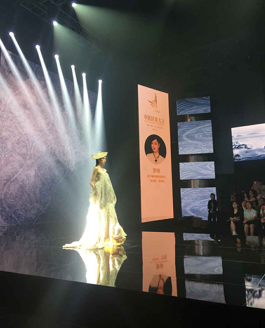 当晚金顶奖设计师联合发布会,欧柏兰奴和LUOZHENG华服,联合发布了以弘扬良渚文化为主题的设计大秀。